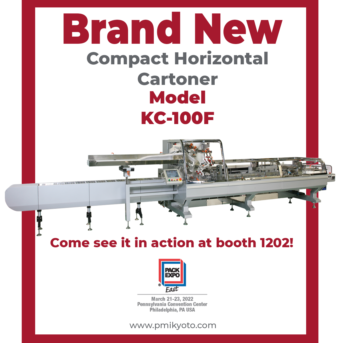 PMI KYOTO is proud to announce that we will be showcasing its newest machine, model number KC-100F Horizontal Cartoner, at Pack EXPO East on March 21-23, 2022!